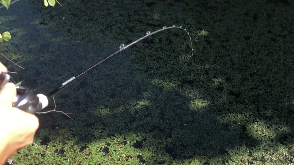 ベイトフィネスを利用する最大のメリットは障害物周りでも安心してフィネスワームを扱えることです。通常フィネスワームはスピニングタックルを使用する場合が多いですが、スピニングタックルの細いラインではラインブレイクの可能性が高まります。