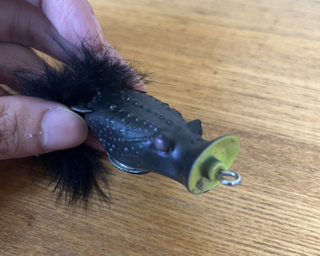 フロッグは、バス釣りで使われるトップウォーターの一種で、カエルをイミテートして作られています。