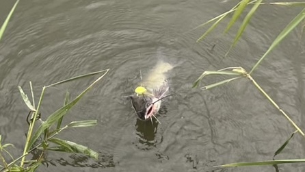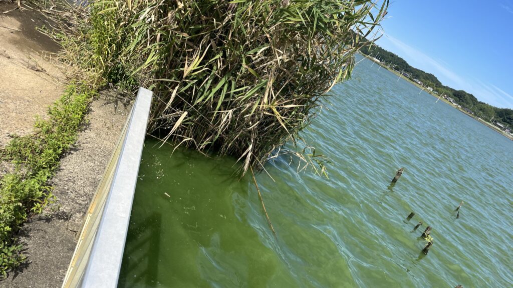 アシ際はデイナマズで狙って欲しいポイントになります。ベイトが集まりやすく、常時日陰にもなるためナマズが溜まっていることも多いです。