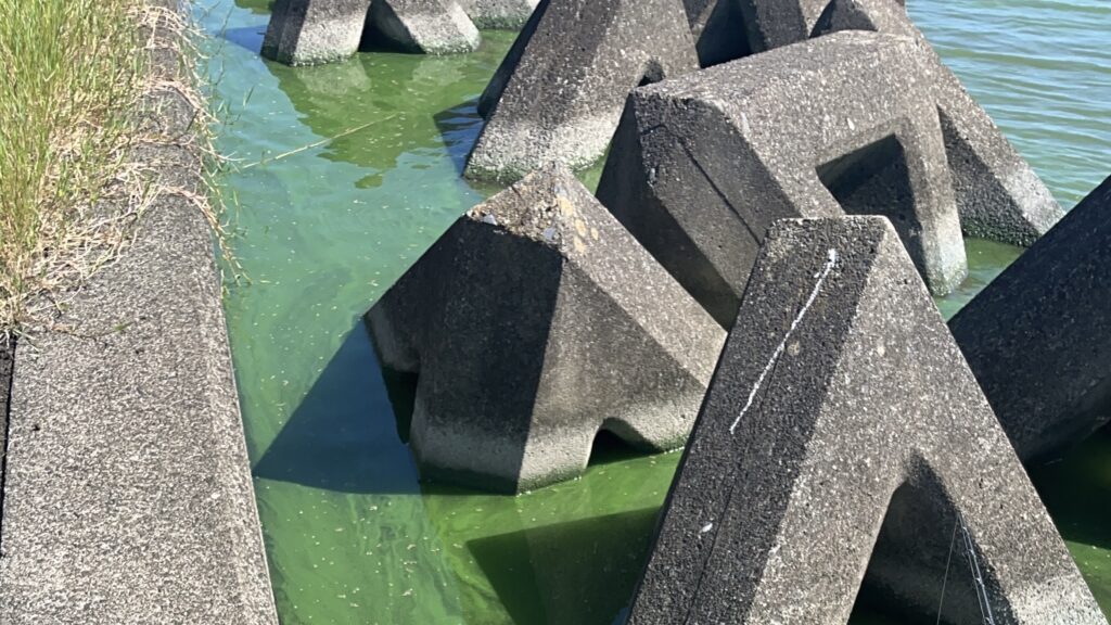 - テトラやコンクリ護岸などの気温が上がりやすいエリア