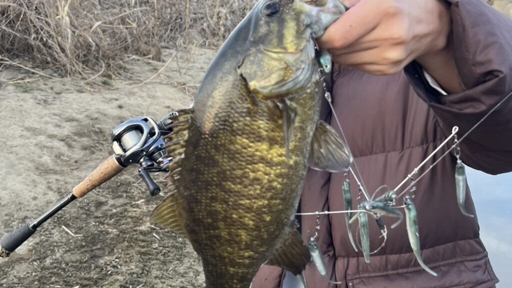 複数のワームによるルアーパワーやフラッシングによって2月のニュートラル状態のブラックバスであっても捕食本能を強く刺激します。