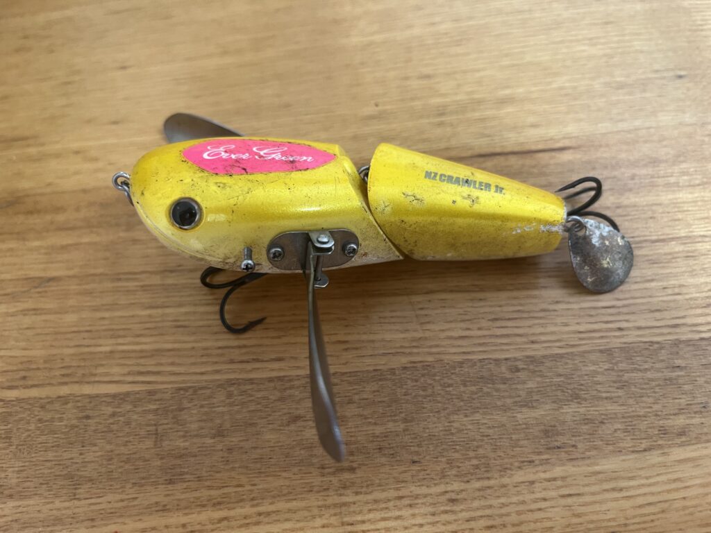 サイズ感は意外にも小粒で手のひらサイズになるため、小規模な野池や水路などでもプレッシャーを与えにくく、小バスからデカバスまで幅広いサイズを狙えます!オールドルアーの代表格とも言えますが、今でも現役で釣果を上げてくれるクローラーベイトです。
