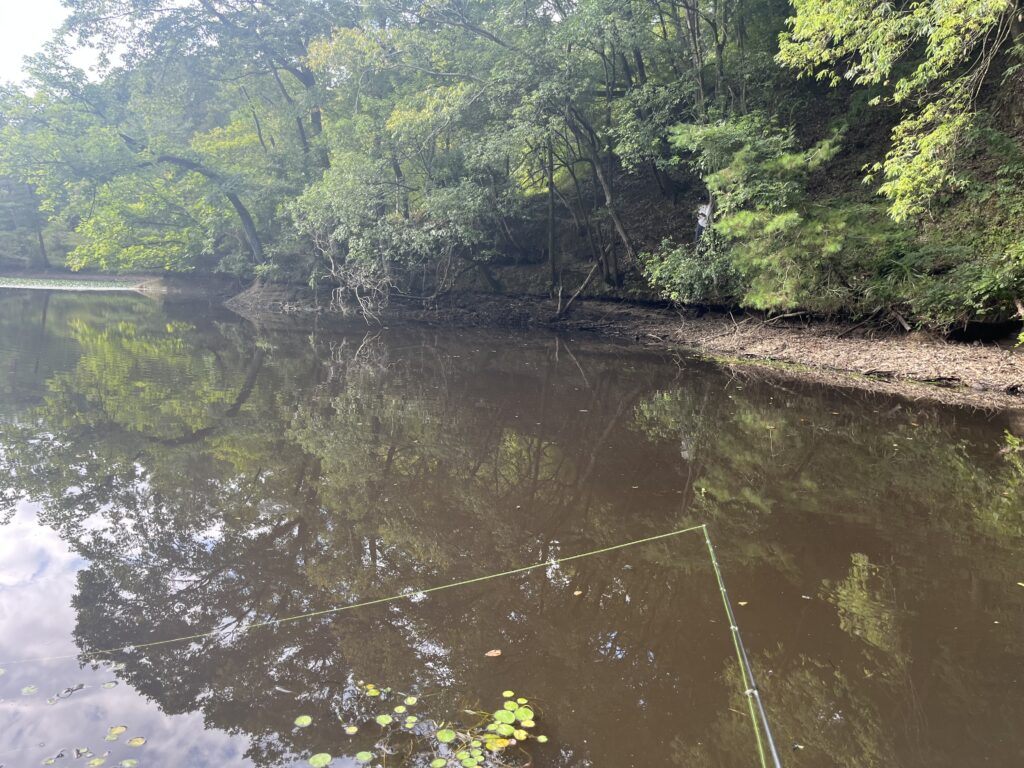 夏に成長したウィードエリアは、10月にかけて枯れ始めます。この枯れ始めたウィードエリアには、小魚や甲殻類、虫などのベイトが集まりやすいです。