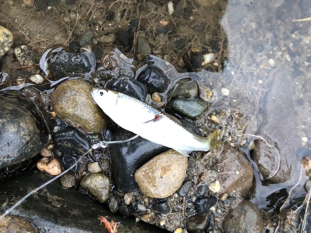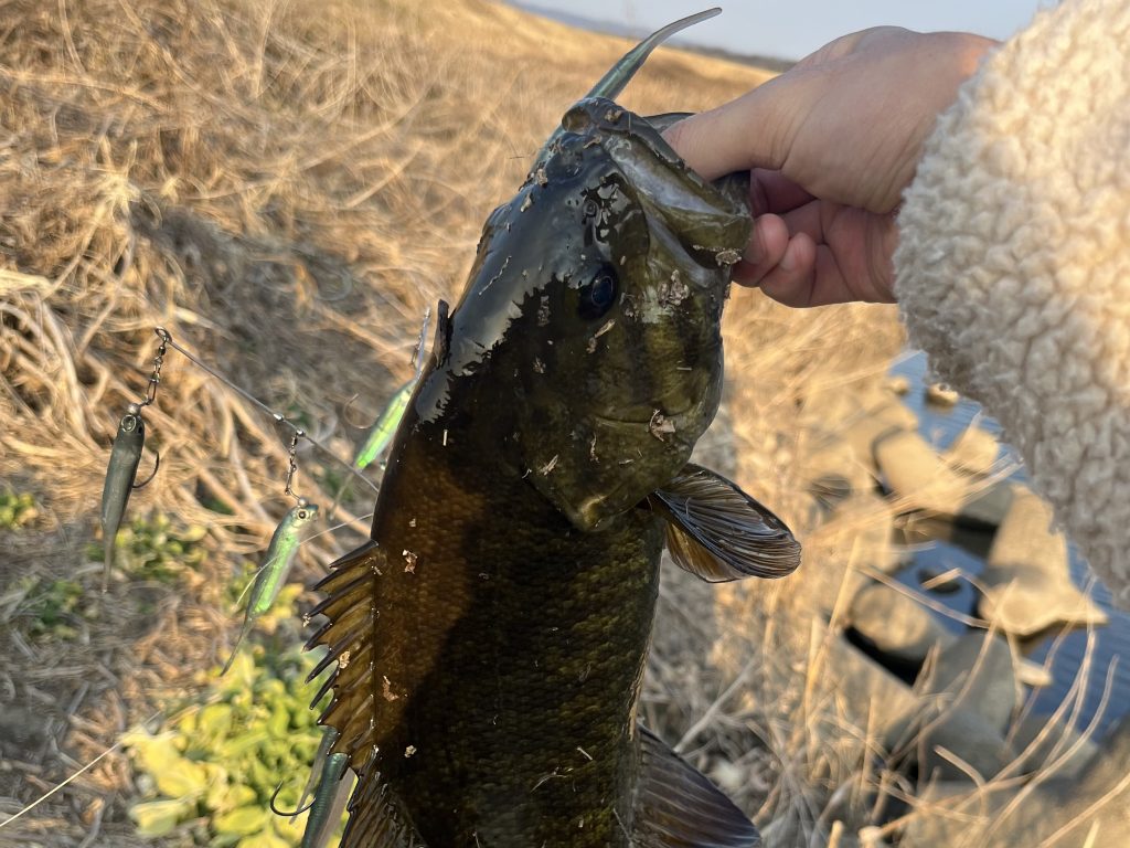浮力の高いリアルフィッシュ系ワームを虫系ワームのようにシェイクしながらトレースしていきます。
